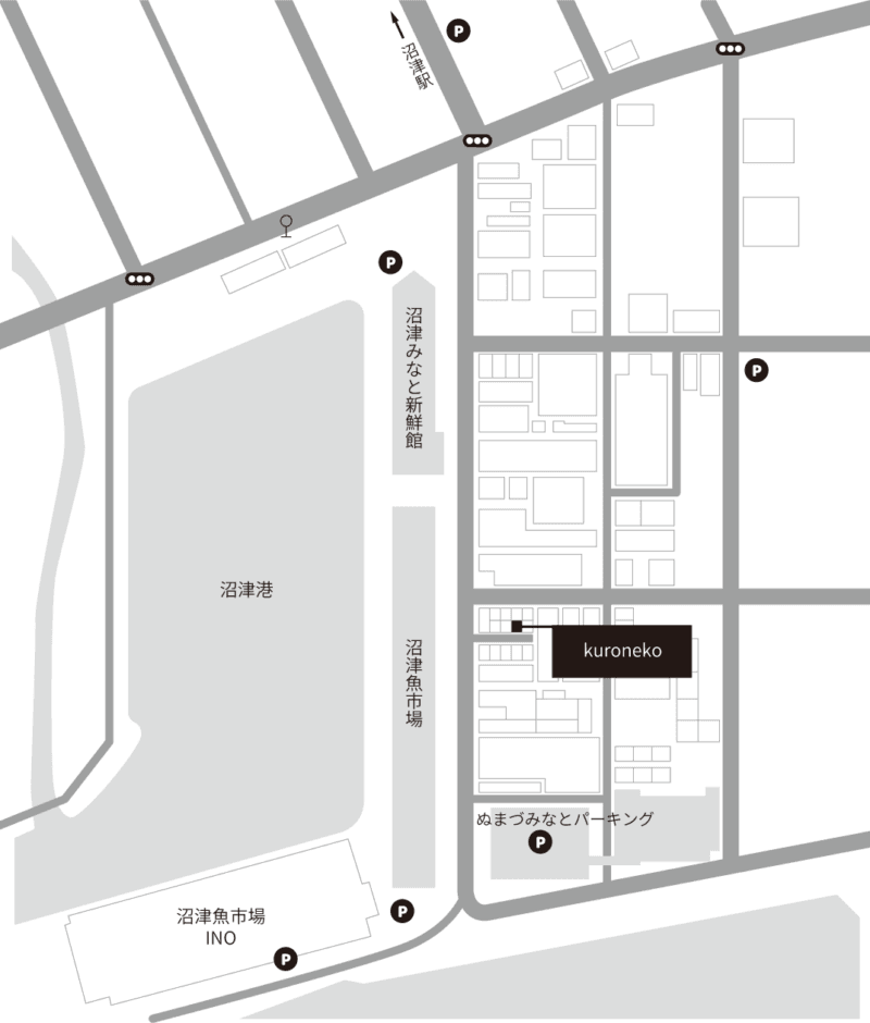 アクセス 2024.08.262025.10.29 所在地 静岡県沼津市千本港町122-9 お車:東名高速道路 愛鷹ICより約20分 電車:東海道本線「沼津駅」南口より徒歩約30分、タクシー約10分 バス:沼津駅発→千本港町で下車 徒歩約3分定休日 不定休営業時間 10:00〜16:00(予定)駐車場 当店は専用駐車場がございません。 お車でお越しの方は、店舗より南約400mにあります有料立体駐車場「ぬまづみなとパーキング」をご利用ください。